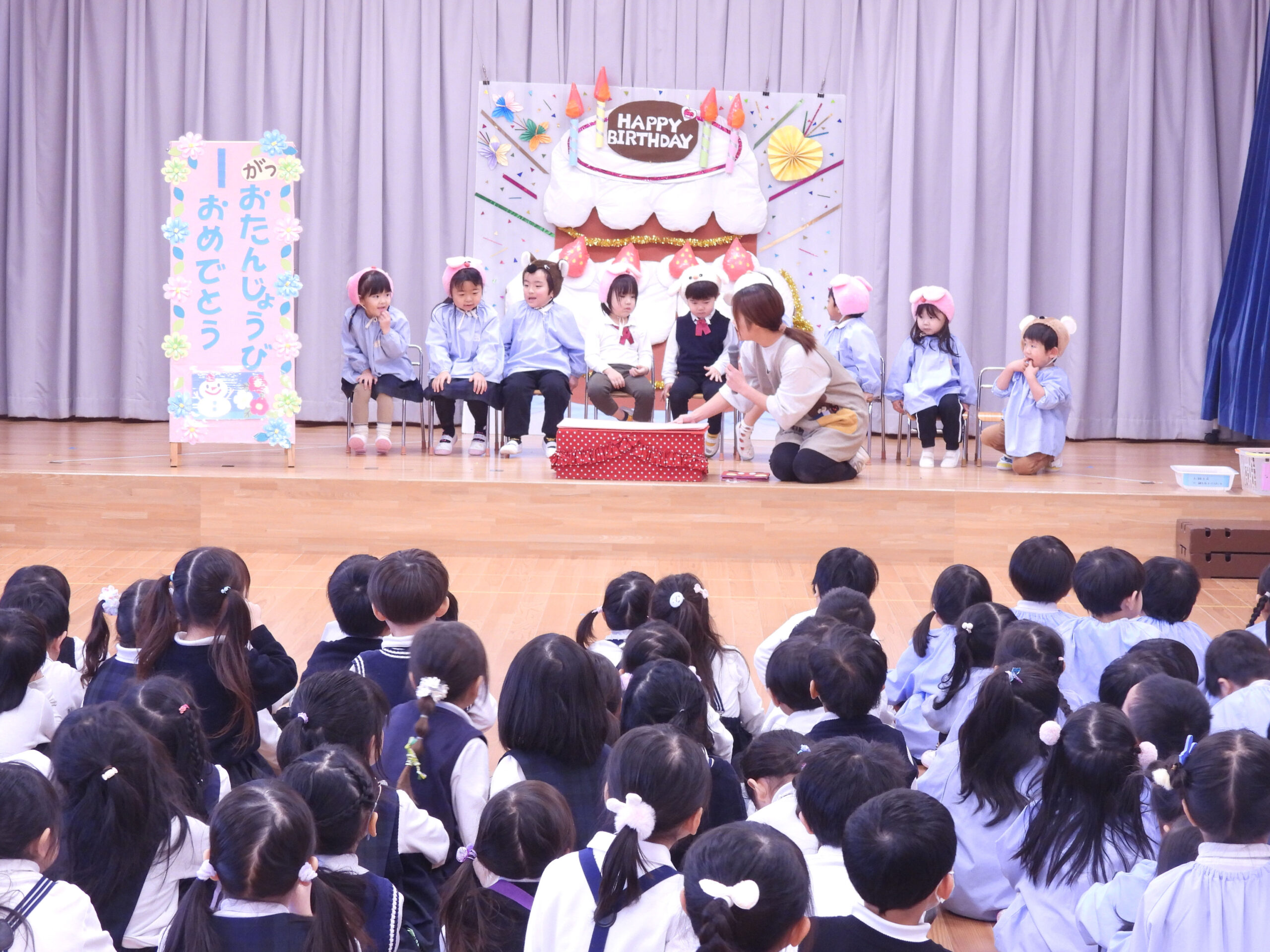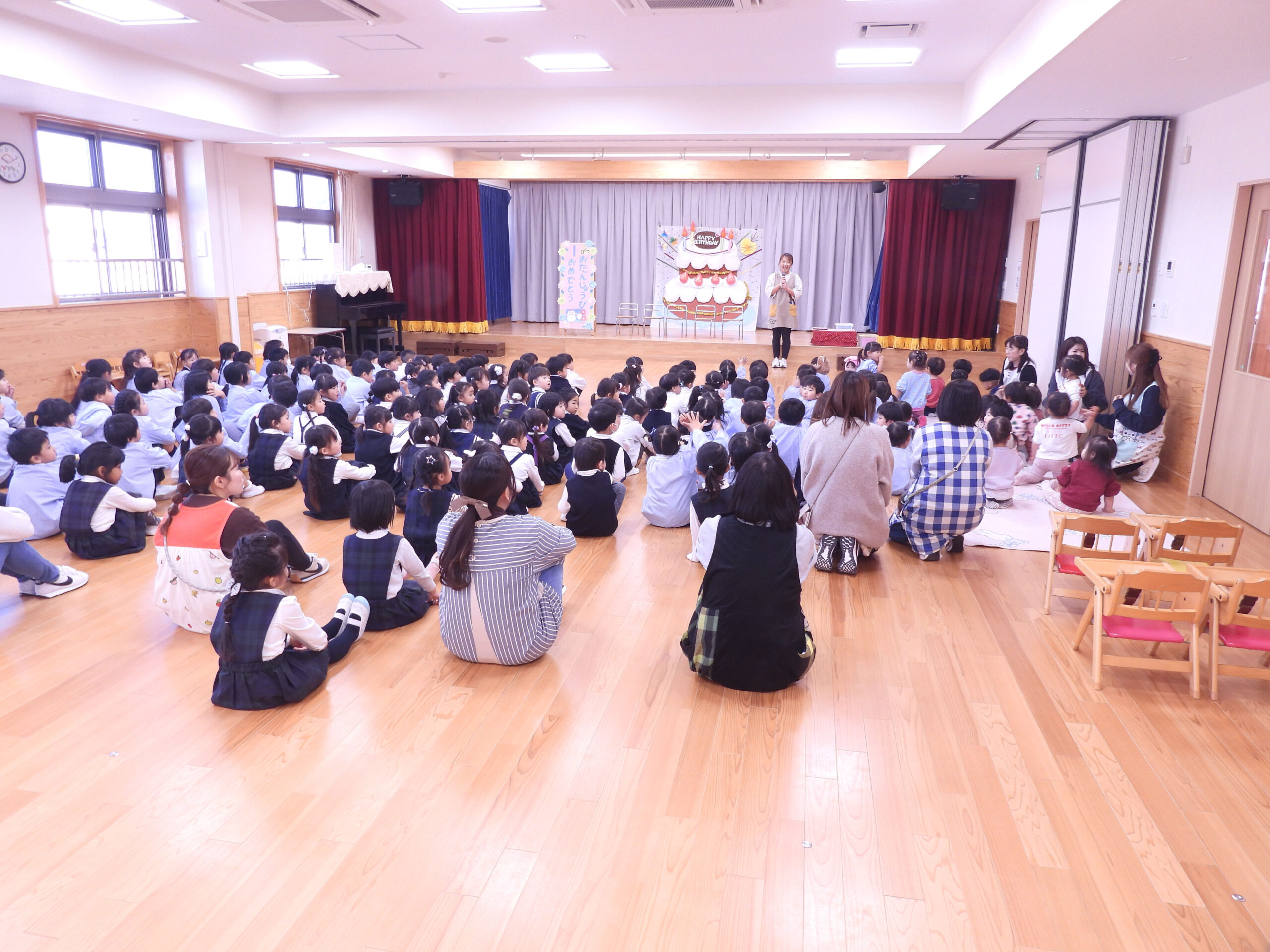 2026年1月16日 / 最終更新日時 : 2026年1月16日 kanrisya 子どもたちの様子(保護者向け) 08.01.16☆1月生まれ誕生会をおこないました。いつものように誕生月を迎えた子どもたちへのインタビューや先生から普段の様子をお話ししていただきました。先生からのお楽しみは「手品」みんな楽しく不思議そうに見ていました。Copy